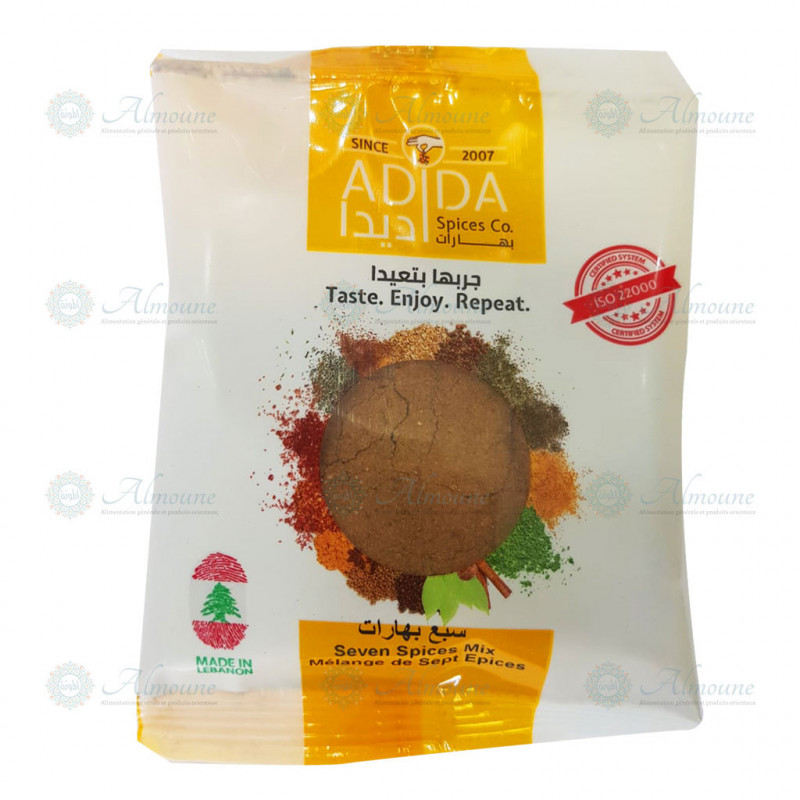 Une explosion d'arômes exotiques de sept épices. Ingrédients : Poivron, Cannelle, Gingembre, Mahleb, Noix de Muscade, Clous de Girofle, Poivre Noir.