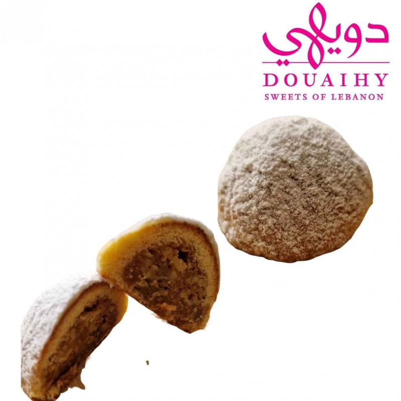 Ces maamouls sont aux noix. Ils ont la particularité d’être très généreusement farcis de noix ce qui leur apporte du croquant qui contraste délicieusement avec le fondant de la pâte sablée.