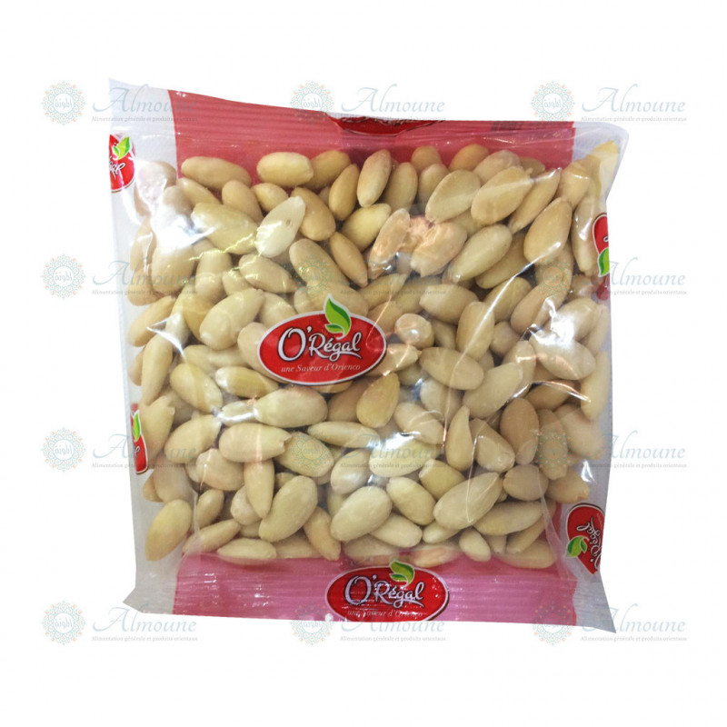 Les amandes blanchies sont souvent utilisées dans une variété de recettes culinaires, des pâtisseries aux plats principaux. Leur peau enlevée offre une texture plus douce et une apparence plus nette dans les plats finis. Les amandes blanchies peuvent être hachées et ajoutées à des gâteaux, des biscuits ou des barres énergétiques, ou utilisées comme garniture dans les salades, les plats de riz ou les plats de poulet. Elles peuvent également être transformées en pâte d'amande pour la fabrication de bonbons ou de desserts. En bref, les amandes blanchies ajoutent une touche de croquant et de saveur délicate à de nombreuses créations culinaires.