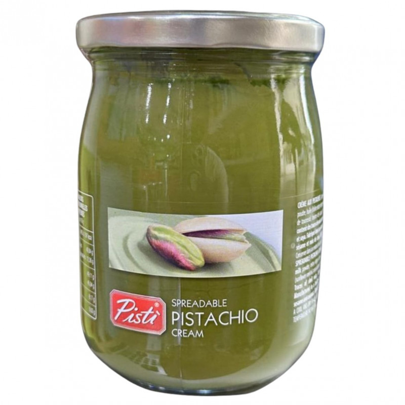 CRÈME AUX PISTACHES. Ingrédients: pistache 45%, suce, lait en poudre,huile d'olive-extra vierge, graisse vegetale non hydrogene (huile de tournesol, beurre de cacao), émulsifiant: lécithine de soya, Peut contenir des traces de noix et de fruits secs. Contient: pistache,lait et soja. Fabriqué dans un établissement qui traite: Gluten, oeufs, sésame et noix de coco, NE CONTIENT PAS D'HUILE DE PALME.