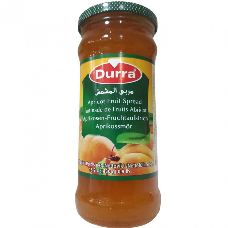 Confiture d'abricot durra 430 gr. Ingrédients:Abricots (55%), sucre(%), Glucose(14.6%), régulateur d'acidité E330(0.33%), consérvateur E202(0.045%) Antioxydanrs)