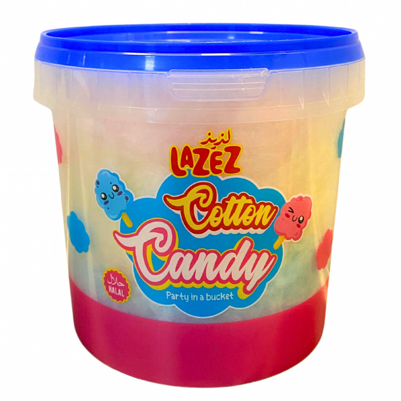 Seau de barbe à papa Halal trois goûts: fraise, banane, myrtille