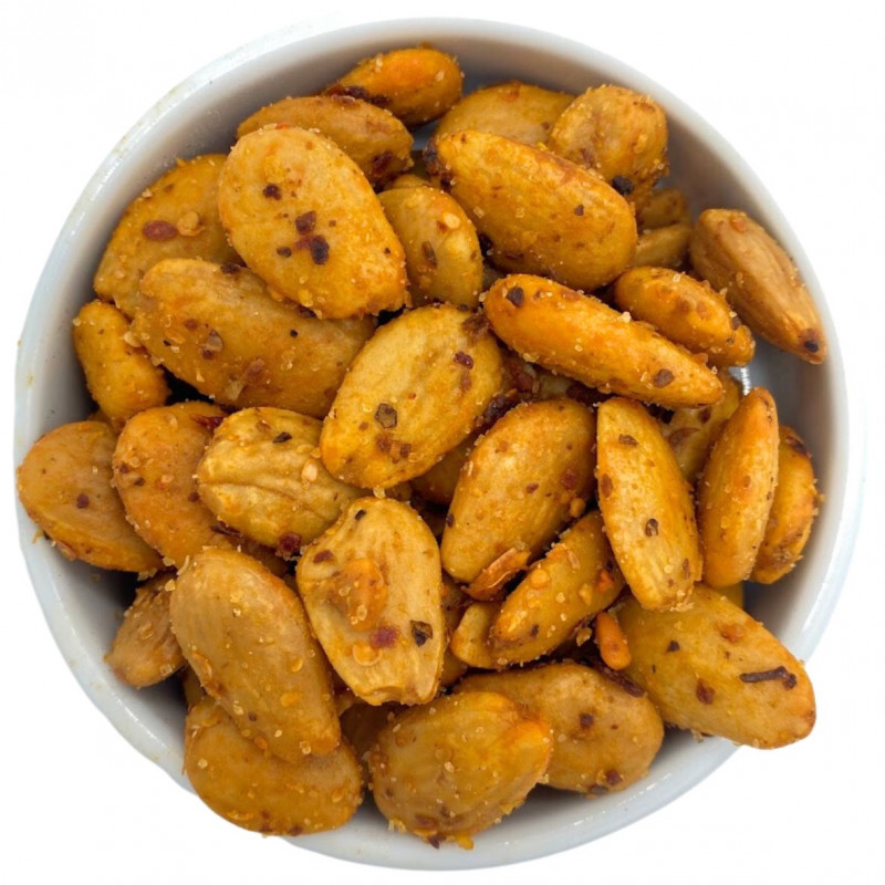 Alerte gourmandise ! Ces amandes frites au paprika fort sont irrésistibles. Elles auront sans aucun doute un grand succès à l'apéritif.