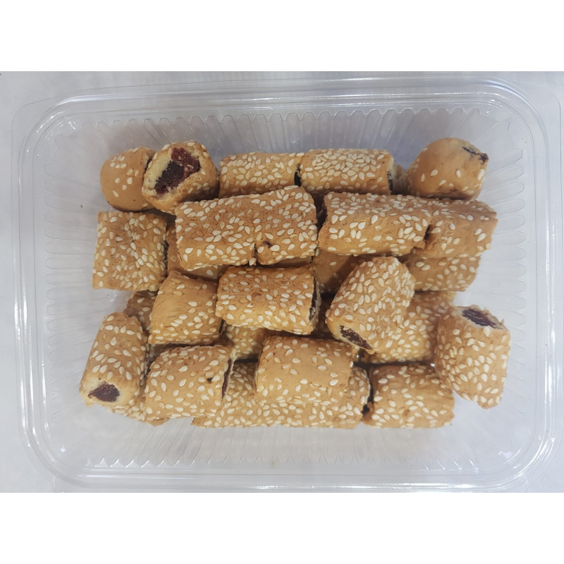 Ingrédients: farine de blé, huile de tournesol, sucre glace, dattes (50%), sésame, levure.