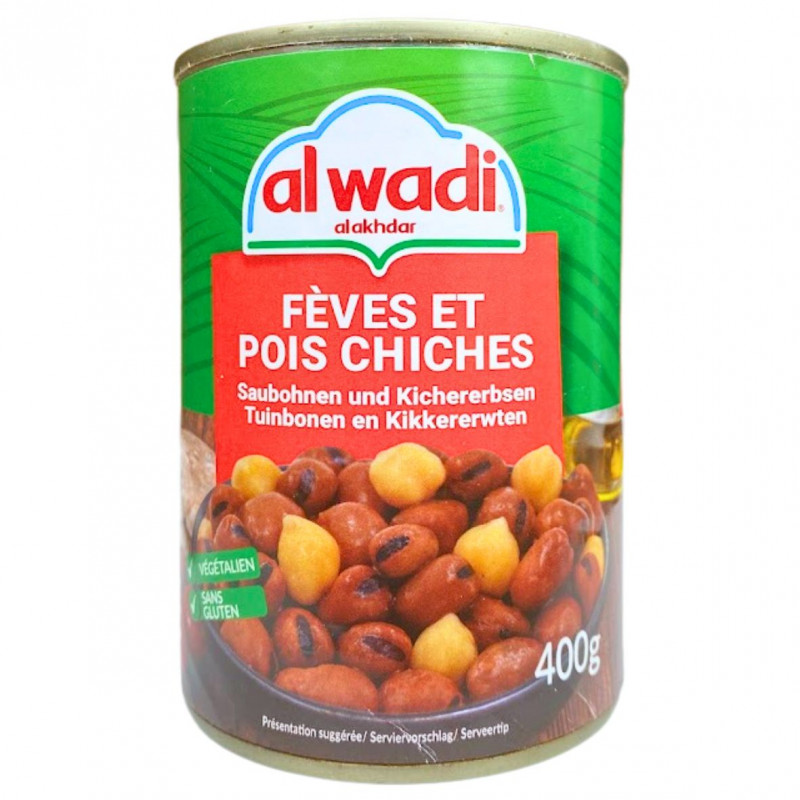 Ingrédients : Fèves cuites (55%), pois chiches entiers cuits (min 10%), eau, sel, sucre, acide citrique, antioxydant : EDTA de calcium disodique et sulfite de sodium. Traces possible de graines de sésame. Pays d'origine des fèves et des pois chiches : Non - EU.