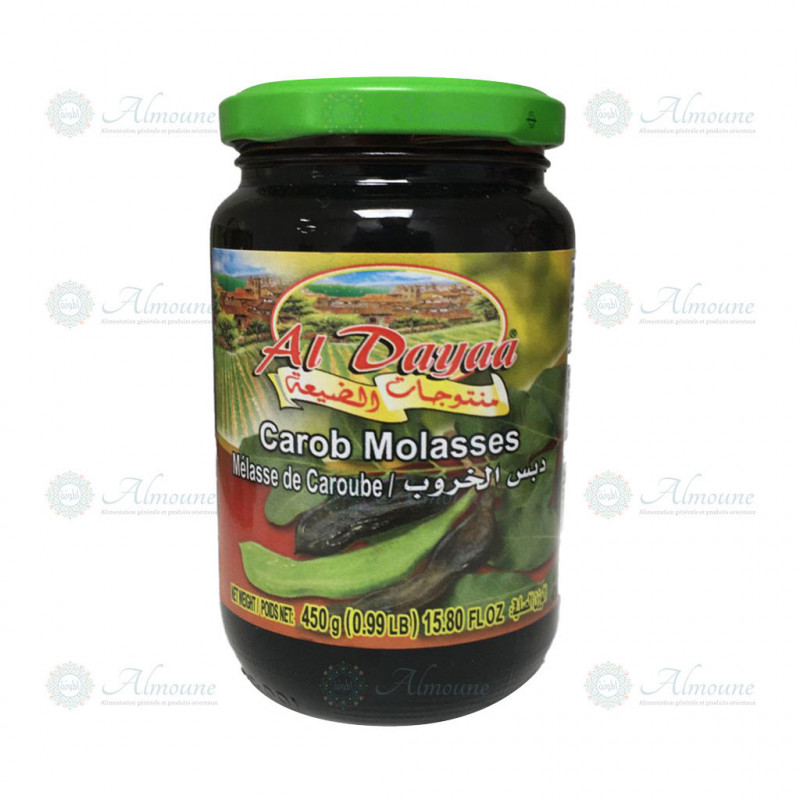 La mélasse est connue pour être bénéfique pour les os, le cœur, l'hypertension. Elle est aussi considérée comme un antioxydant naturel. C'est un sirop épais sucré extrait de la pulpe de la gousse du caroubier. Le terme mélasse est le plus souvent employé à cause de la couleur foncée du sirop. La mélasse de caroube contient 64 % de glucide, des sels minéraux (calcium, potassium, magnésium, sodium et phosphore)